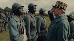 Lo primero que habría que destacar es el esfuerzo que se ha hecho para ambientar esta historia. Sin demasiada opulencia, la cinta realmente transporta tanto a la aldea senegalesa como al campo de batalla, construyendo un retrato convincente de esta época.