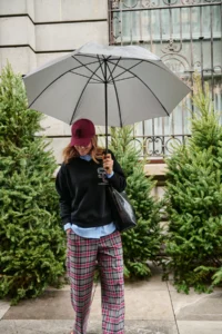 La colección incorpora abrigos acolchados, suéteres tejidos, faldas de cuadros y accesorios en tonos vino, neutros y acentos festivos. Son piezas pensadas para adaptarse a diferentes momentos del día, desde una salida rápida por un café hasta una cena con amigos o una posada improvisada. La propuesta busca responder a las necesidades reales de quienes combinan trabajo, compras y celebraciones en una misma jornada.