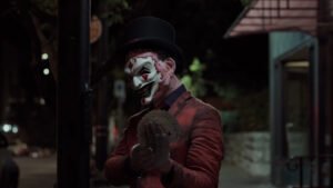 Además, la película logra crear un ambiente oscuro y tenso gracias a la forma en que se desarrolla durante la noche de Halloween. Las calles vacías, las luces y la atmósfera misteriosa hacen que cada escena se sienta más inquietante. Esto ayuda a que el espectador se mantenga atento a cada movimiento del Bufón, y su siguiente víctima, siendo mayormente adolescentes.
