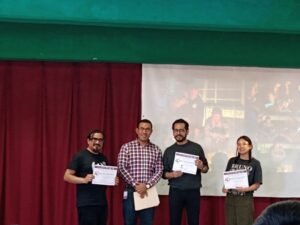 guionista y director, reconocido y condecorado con distintos premios a nivel nacional e internacional, entre ellos El Ariel. Durante la charla escuchó a los jóvenes quienes haciendo un registro previo, enviaron sus guiones para que el profesor pudiera leerlos con calma, analizarlos y durante la clase darles gracias a sus conocimientos una crítica constructiva para mejorar los textos; para darles un formato de guion profesional de cine, que tuvieran una sinopsis, un logline como para hacer un pitching y poder vender su proyecto a distintas compañías productoras.